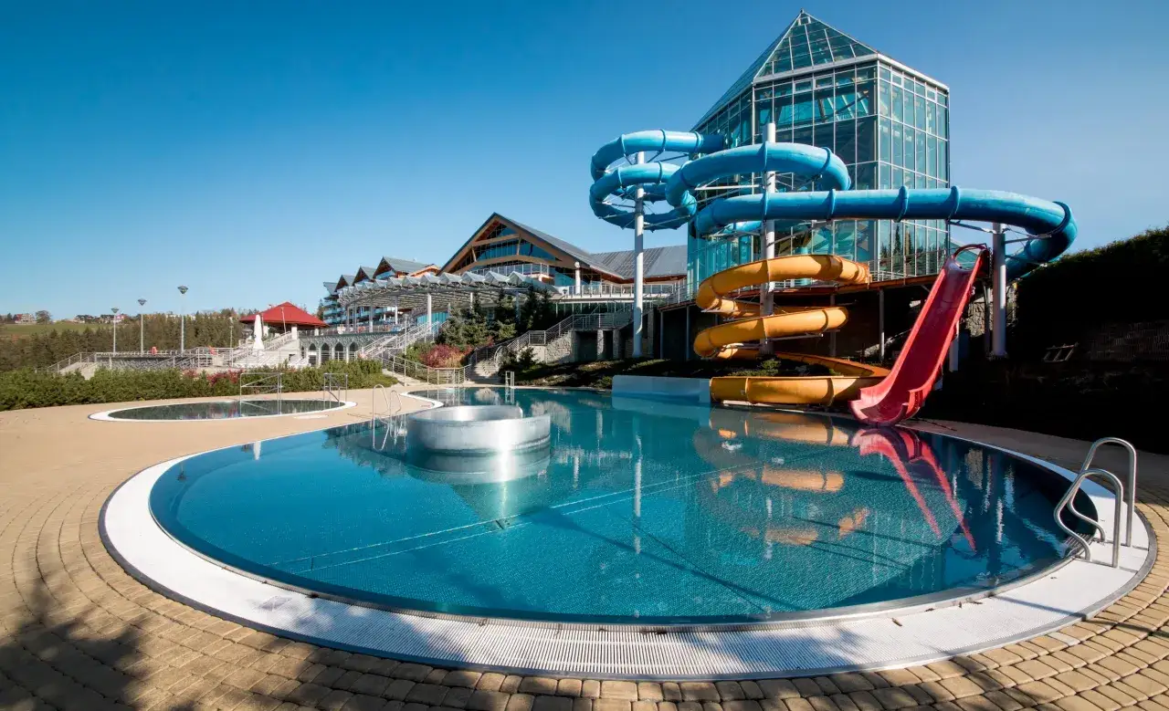 Odwiedzając rekomendowany przez nas hotel z termami w okresie wakacyjnym, można skorzystać ze strefy letniej Term BUKOVINA, obejmującej dwie dodatkowe zjeżdżalnie wpadające do basenu zewnętrznego „Corny Staw” z wodną huśtawką, a także leżaki z widokiem na las, brodzik „Letnie Mocydełko” oraz Letnią Gastronomię.